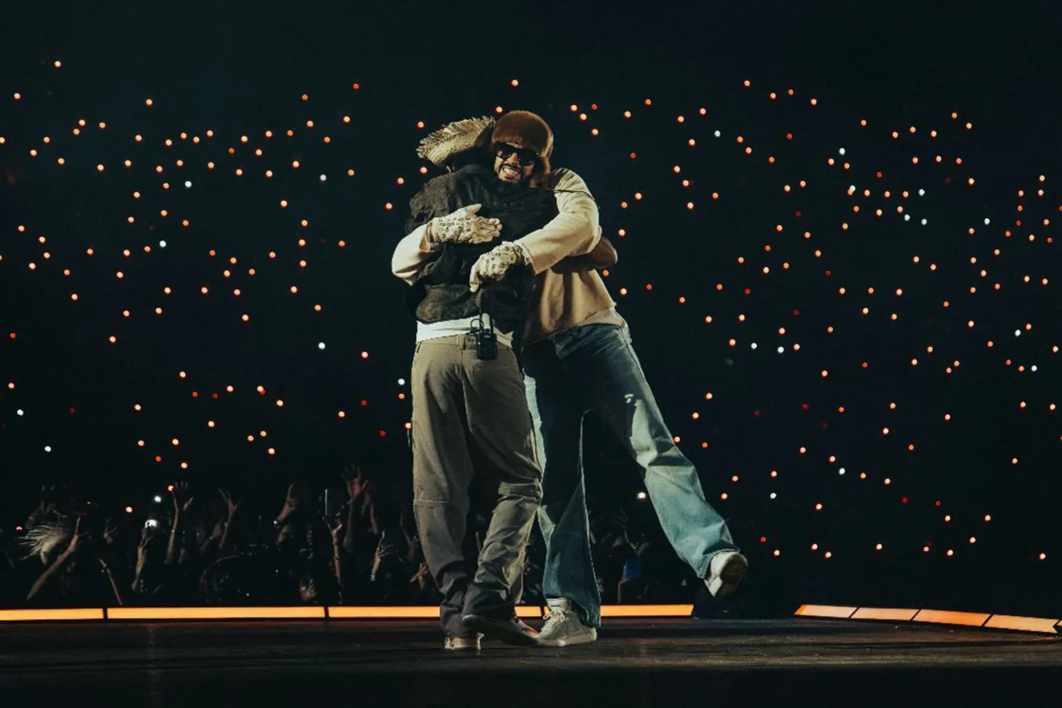 La segunda presentación de Bad Bunny en el Estadio Olímpico Félix Sánchez marcó una noche histórica para la escena musical dominicana. Frente a un público que llenó por completo el recinto y que cantó cada tema sin descanso, el artista puertorriqueño se sorprendió al invitar al ícono dominicano Romeo Santos, un encuentro que provocó una explosión de emoción en todo el estadio.