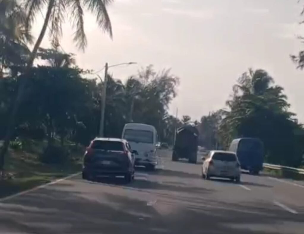 El metraje, revela cómo el vehículo, visiblemente repleto hasta el límite de su capacidad, avanza por la importante arteria vial a una velocidad considerable. A medida que el camión se desplaza, diversos tipos de basura caen sobre el pavimento, creando un rastro de residuos a lo largo de la autopista y poniendo en riesgo a otros conductores.