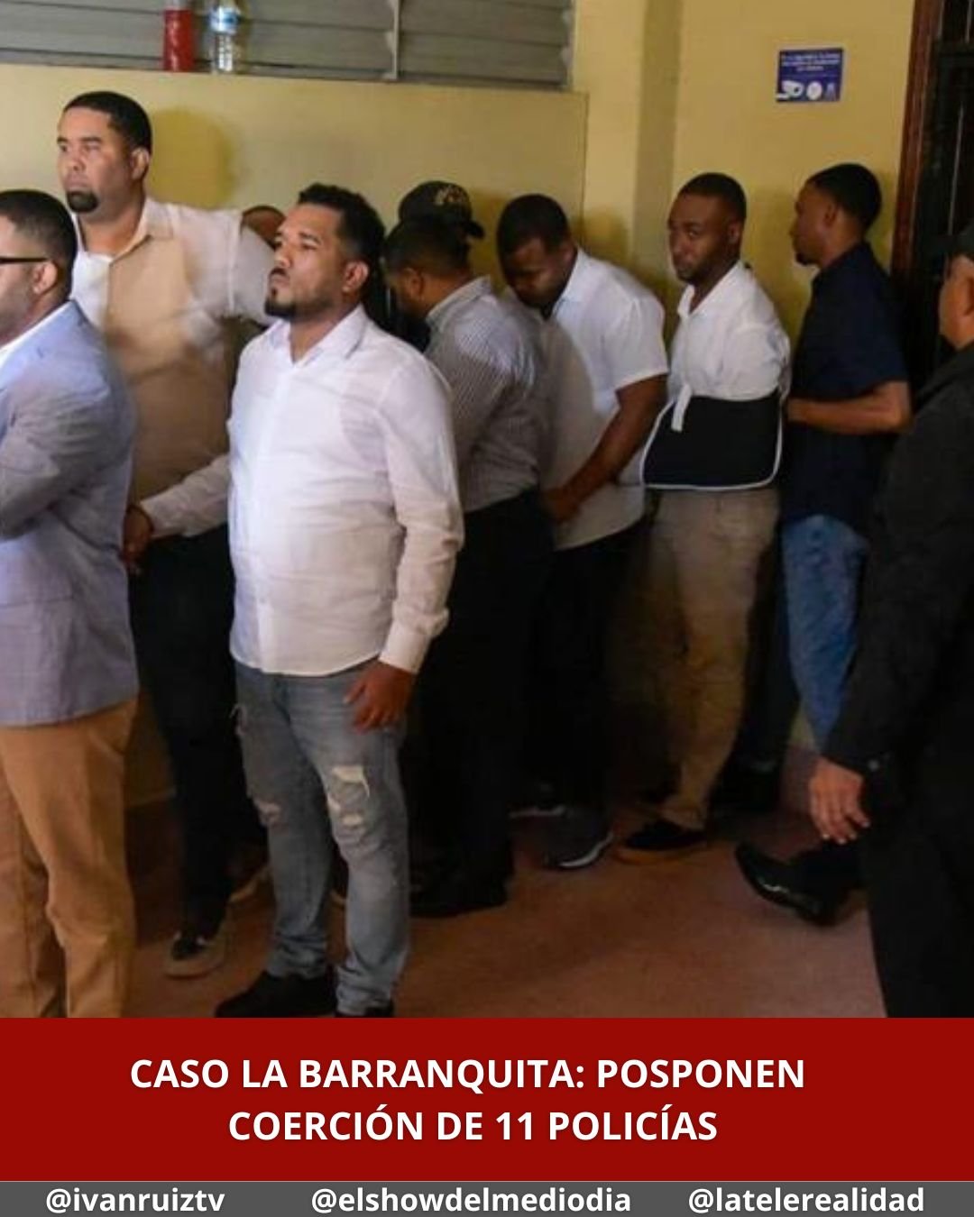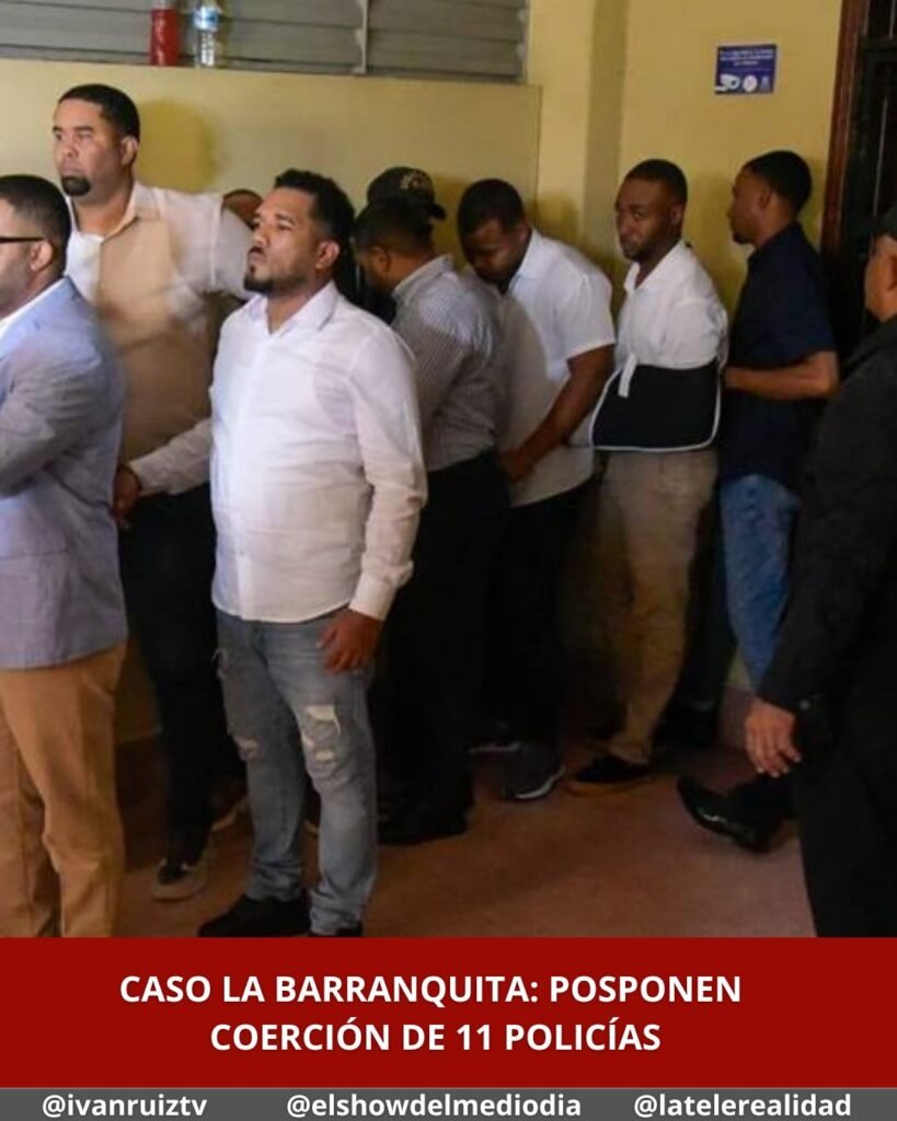 La jueza Yerixa Cabral, de la Oficina Judicial de Atención Permanente del distrito judicial de la provincia Santiago, aplazó para el próximo jueves 9 de octubre la audiencia de medida de coerción contra 11 agentes de la Policía Nacional, acusados de matar a cinco civiles en una plaza comercial en La Barranquita.