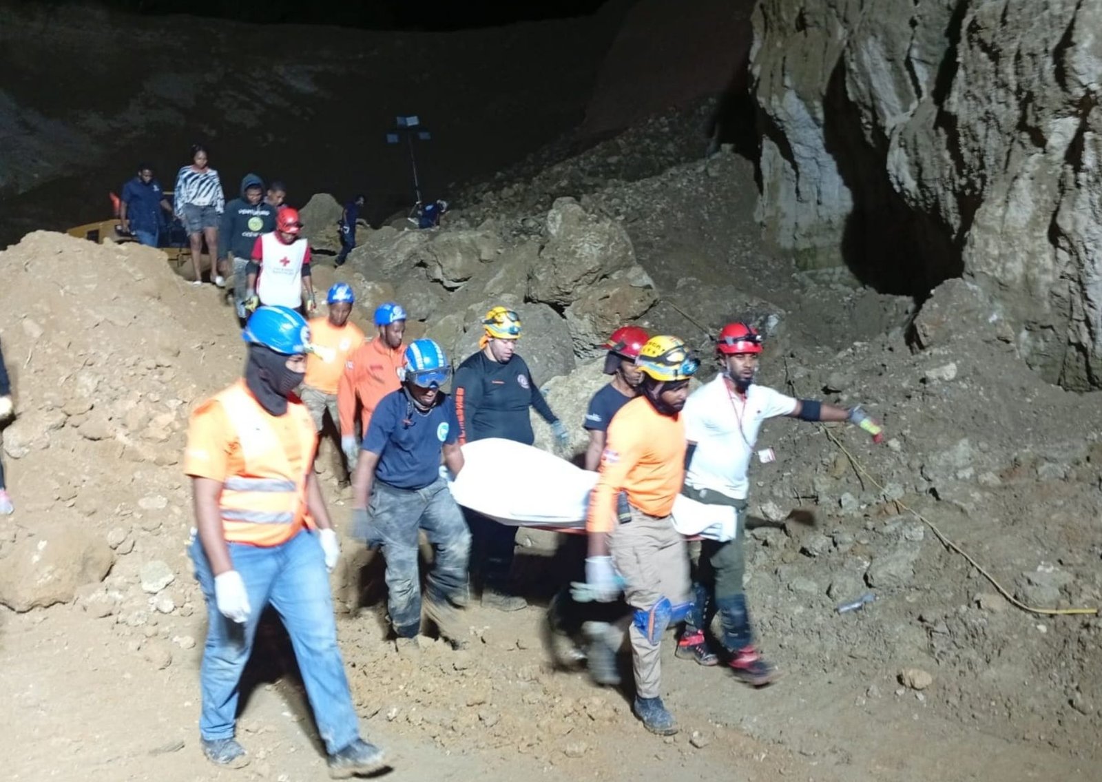 El hallazgo se produjo luego de más de 13 horas ininterrumpidas de labores de búsqueda y remoción de escombros, realizadas por unidades de la Defensa Civil Regional Valdesia y Provincial San Cristóbal, junto a miembros de la Cruz Roja, la Defensa Civil de Haina y Nigua, el Cuerpo de Bomberos de San Gregorio de Nigua y comunitarios de la zona.