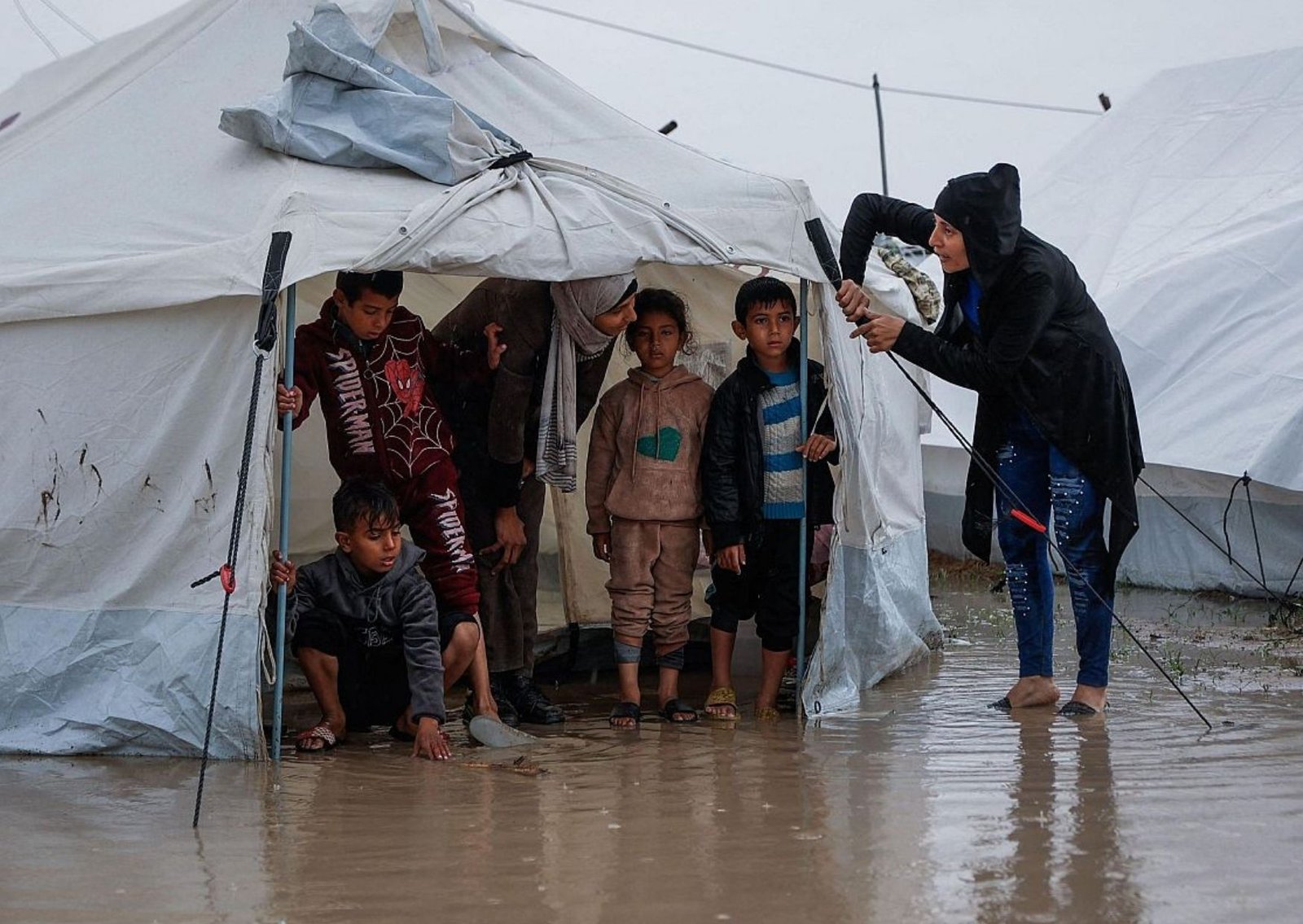Con una Gaza prácticamente arrasada tras dos años de bombardeos israelíes, gran parte de la población palestina se ve obligada a continuar malviviendo en precarias tiendas de campaña que no resisten los fuertes temporales.