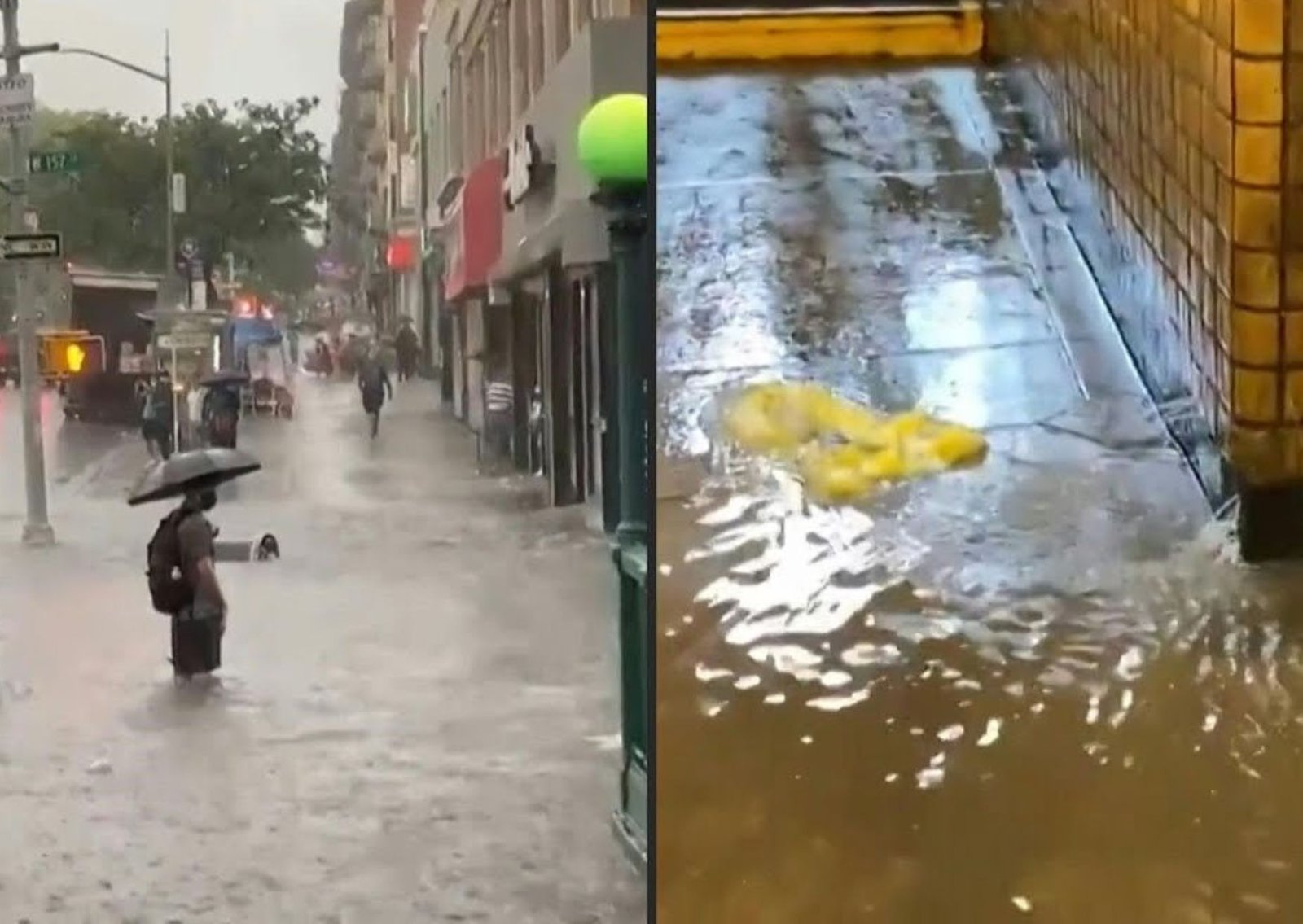 Las lluvias anegaron calles y viviendas en toda la ciudad, lo que provocó la interrupción del transporte público en la Gran Manzana.