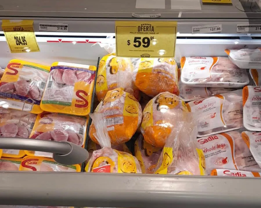 Mientras en los supermercados la libra de pollo se vende entre 76 y 86 pesos, en los mercados informales puede alcanzar los 100 pesos, lo que también influye en el comportamiento de los consumidores.