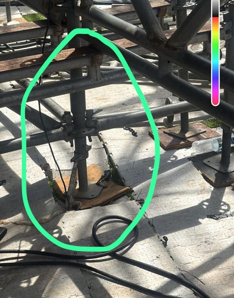 Este montaje se ubicaba en el estadio Quisqueya del ensanche La Fe, Santo Domingo. La inspección incluyó el análisis del hundimiento de 8 puntales en el terreno debido a una saturación de agua producida por las lluvias incesantes en los días previos, todo esto con el objetivo de determinar un plan de acción para garantizar la seguridad y funcionalidad de la estructura.
