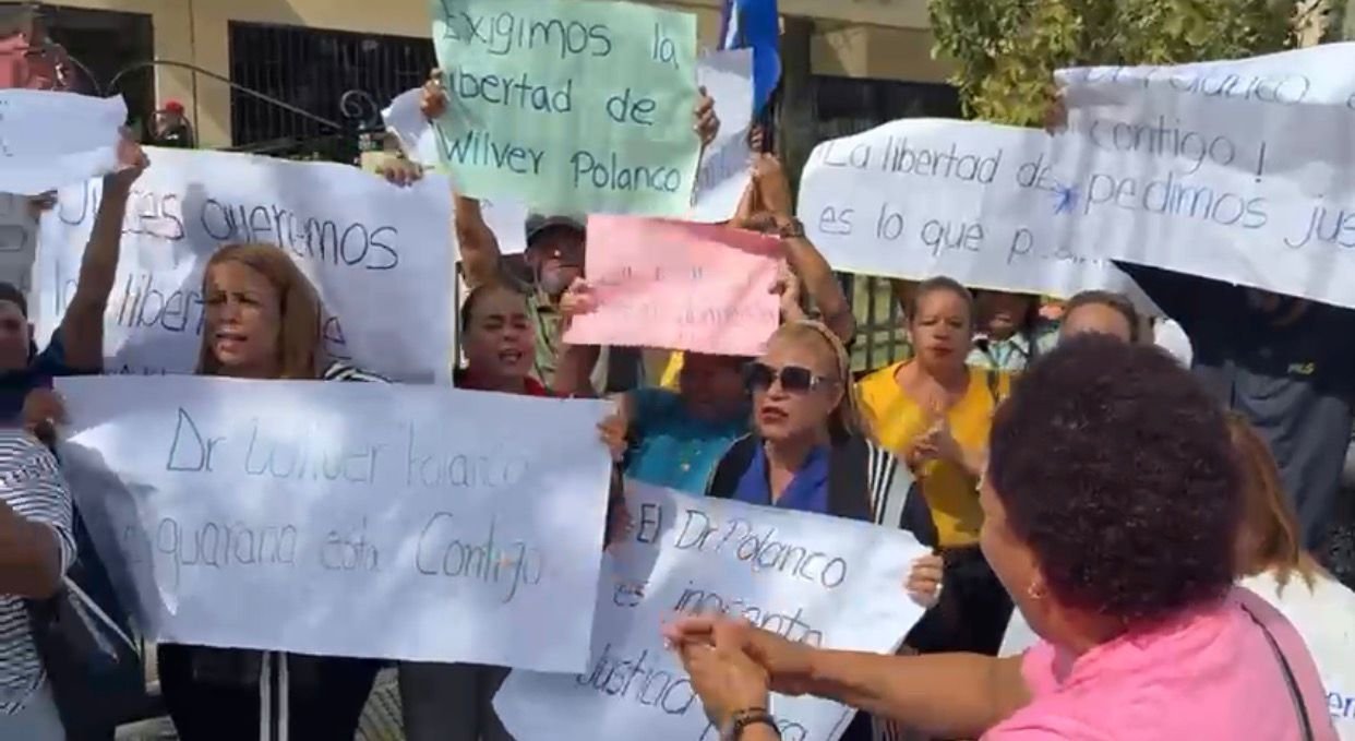 Familiares y amigos del doctor Polanco realizaron un piquete la mañana de este jueves frente al Palacio de Justicia de San Francisco de Macorís, en reclamo de su liberación.