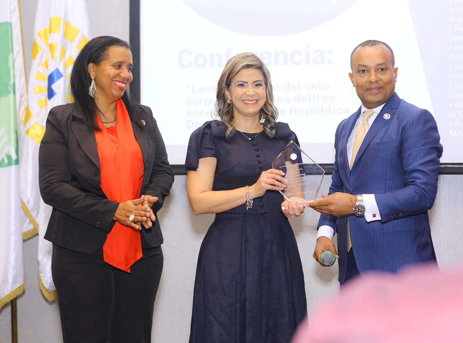 Santo Domingo.- La fiscal titular del Distrito Nacional, Rosalba Ramos, fue reconocida por sus aportes bibliográficos sobre delitos financieros, tras concluir la conferencia sobre el libro de su autoría “Levantamiento del velo corporativo en los delitos económicos”, en el marco de la celebración de la Semana del Contador Público Autorizado.