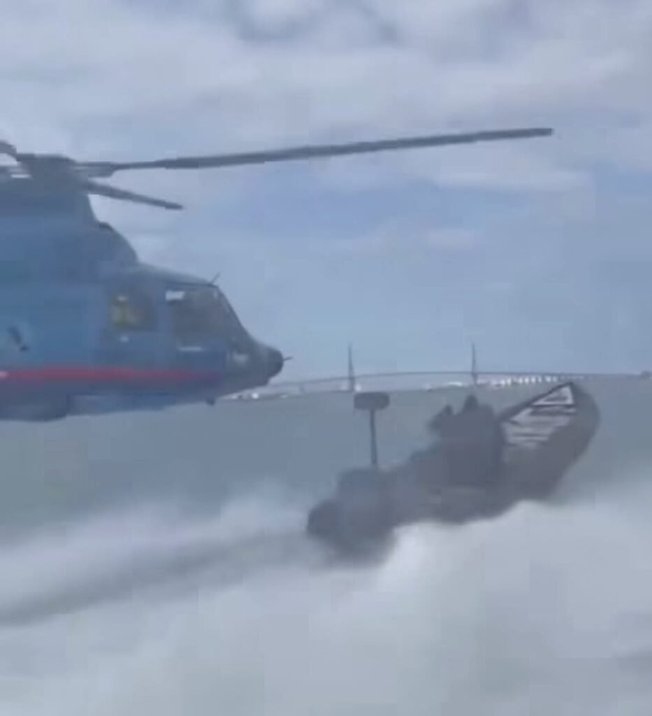Durante la persecución, uno de los ocupantes de la narcolancha, en un acto de extrema audacia y desesperación, golpeó el helicóptero con una pértiga o un objeto largo. La maniobra quedó registrada en el video, mostrando la colisión del objeto con el fuselaje del helicóptero, en un intento por alejarlo o inutilizarlo.