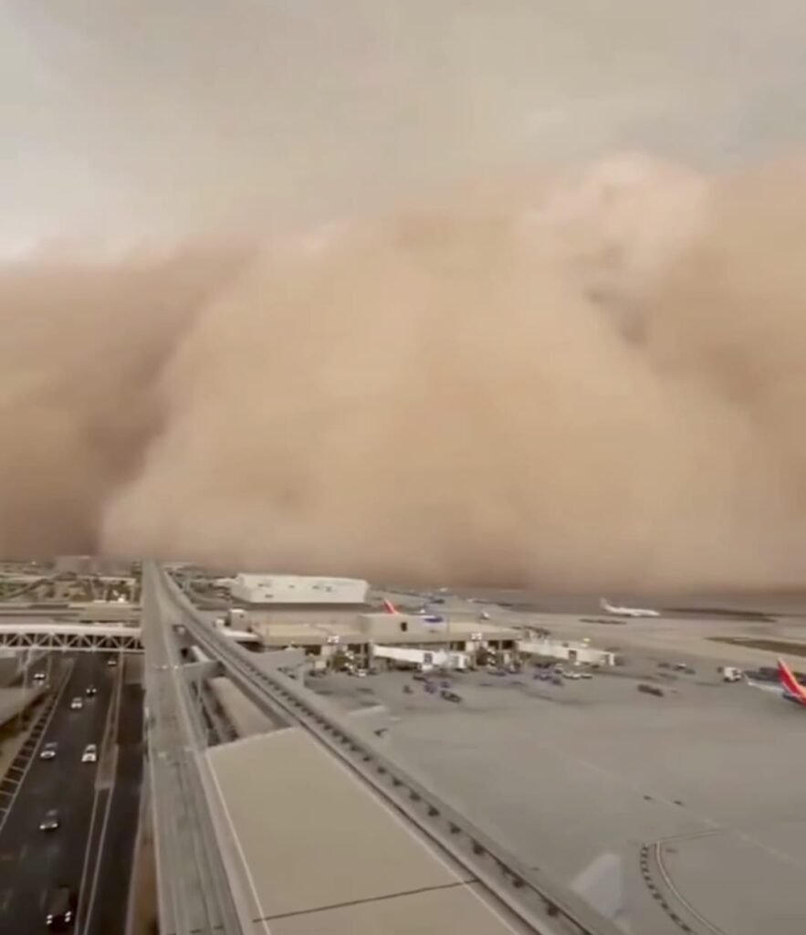 El Aeropuerto Internacional Phoenix Sky Harbor se vio obligado a suspender sus operaciones de despegue y aterrizaje por un tiempo, lo que provocó retrasos significativos y la interrupción de los planes de viaje de cientos de personas. Las imágenes y videos compartidos en redes sociales por residentes y la propia alcaldía muestran la magnitud de la “haboob”, una pared de polvo que parecía sacada de una película de ciencia ficción.